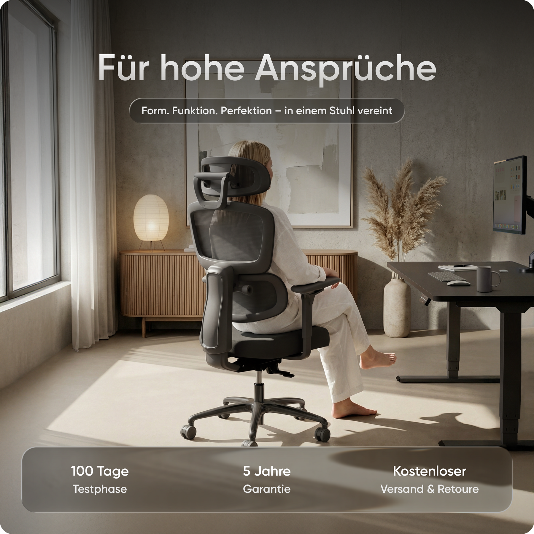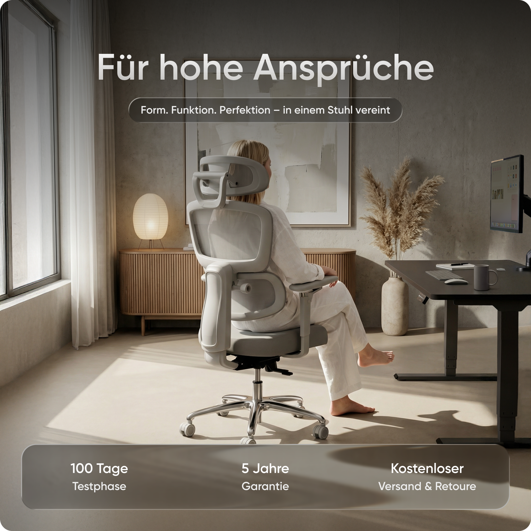 Sollte dein Stuhl ein Problem haben, sende uns einfach Fotos oder ein Video des Defekts an support@deskspace.de. Unser engagiertes Kundenservice-Team wird das Problem umgehend überprüfen. In den meisten Fällen versenden wir das erforderliche Ersatzteil oder eine neue Komponente bereits am nächsten Werktag, um sicherzustellen, dass dein Arbeitsfluss nicht gestört wird.
