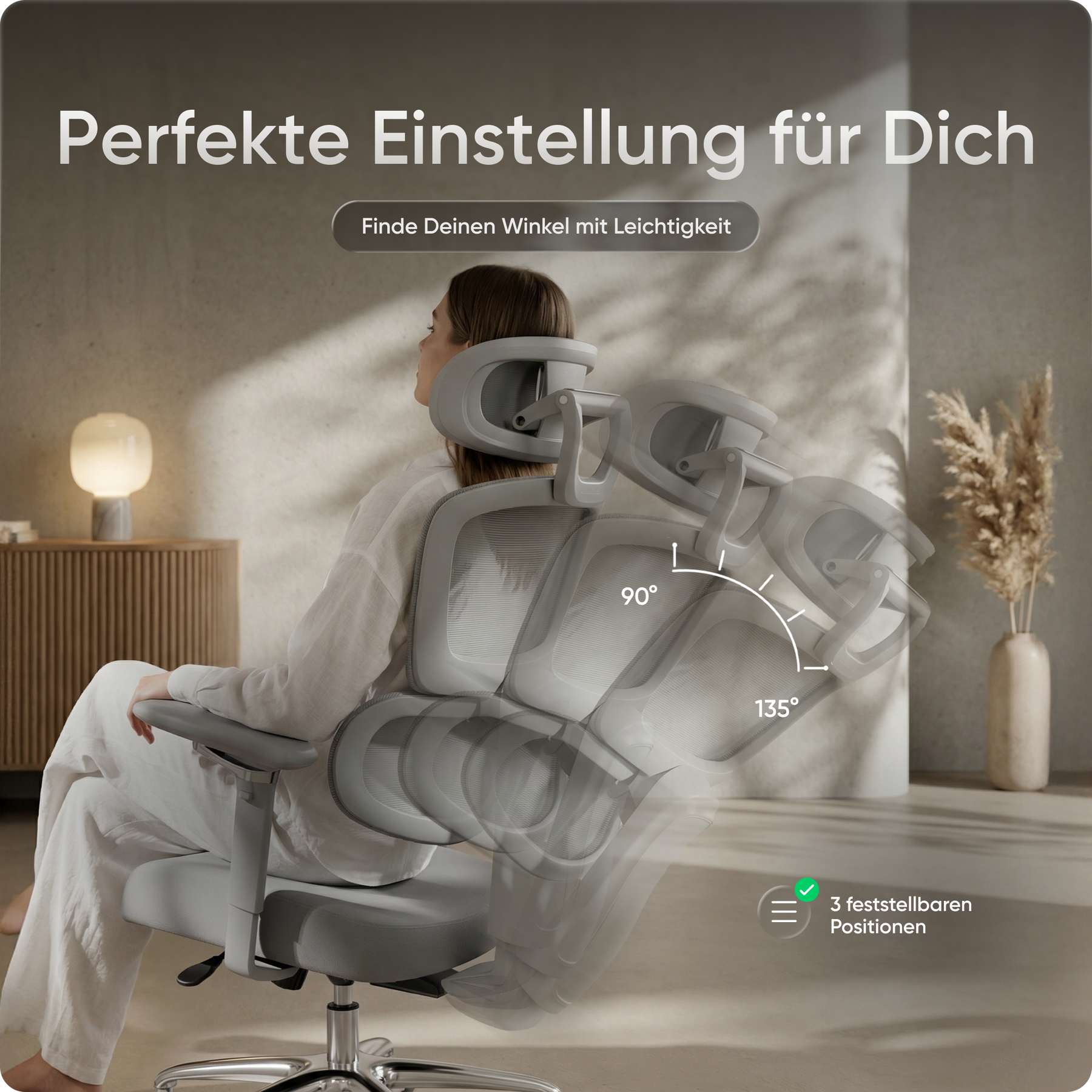 Trois niveaux d'inclinaison – 90°, 110°, 135° – pour la concentration, la détente et tout ce qui se trouve entre les deux.